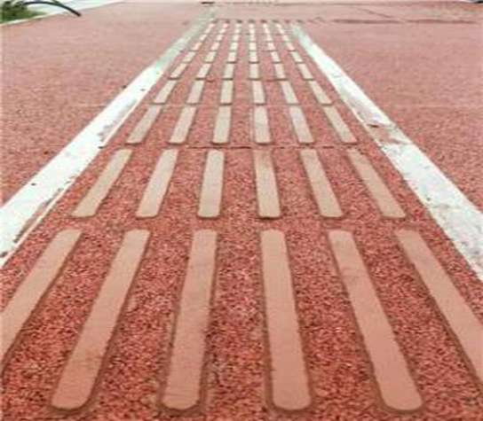 性能特點(diǎn):聚合物現(xiàn)澆金剛盲道是采用無機(jī)高強(qiáng)聚合物材料結(jié)合專用磨具,在現(xiàn)有路面上通過現(xiàn)澆的方式制作而成的連續(xù)性盲道,分為導(dǎo)盲條和導(dǎo)盲點(diǎn)兩種。瀝青混凝土或混凝土基礎(chǔ)具有永久的結(jié)合力、耐磨、防滑、防污、與道路同壽命。