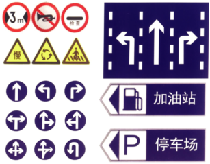 交通標(biāo)志分為主標(biāo)志(警告標(biāo)志、禁令標(biāo)志、指示標(biāo)志和指路標(biāo)志)輔助標(biāo)志以及其他標(biāo)志,交通標(biāo)志設(shè)置形式一般為柱式、懸臂式、門式和附著式標(biāo)志。